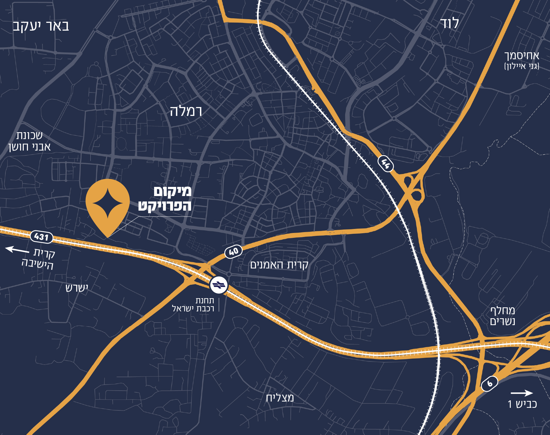 תחנת רכבת ישראל חדשה ומהירה (כ20 דק' לירושלים/המרכז) מוקמת בימים אלו במרחק הליכה קצר מהפרויקט, לצד קווי אוטובוס רבים לנגישות קלה לכל מקום במהירות.